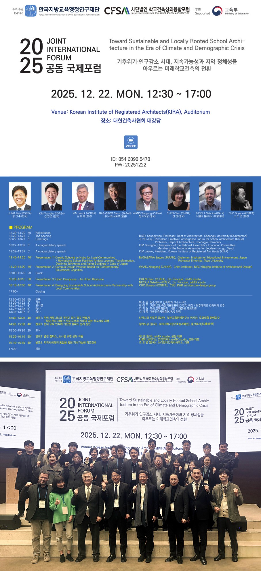 이번 포럼은 「Toward Sustainable and Locally Rooted School Architecture in the Era of Climate and Demographic Crisis」를 주제로, 기후 위기 · 인구 감소 시대 속에서 지속 가능성과 지역 정체성을 아우르는 학교 건축의 전환 방향을 모색하는 자리로 마련되었습니다.