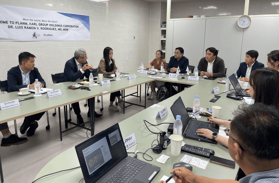 (주)플랜엠은 지난 9월 26일 음성 본사에서 필리핀 Karl Group Holdings Corp.의 루이스 라몬 V. 로드리게스 회장, 김만기 KAIST 교수, 문병찬 글로벌조달개발원 본부장 등과 함께 필리핀 의료시장 진출을 위한 논의를 진행했다.
