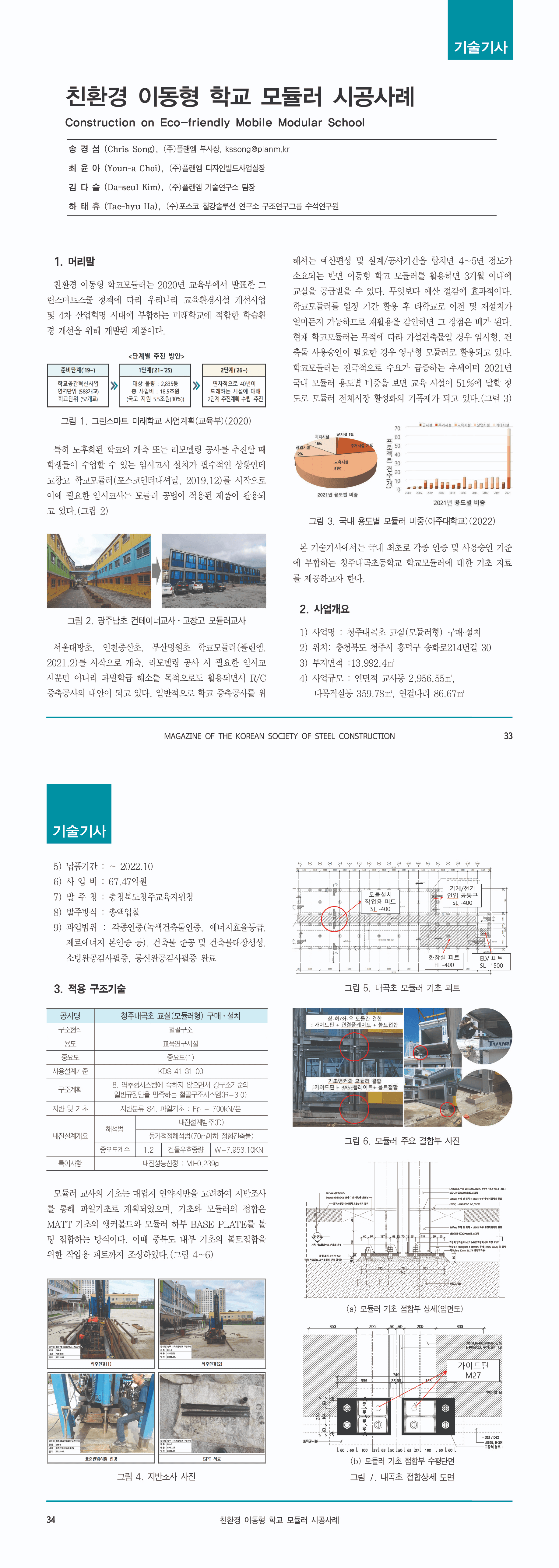 한국강구조학회지 제 34권 기술기사, 친환경 이동형 학교 모듈러 시공사례