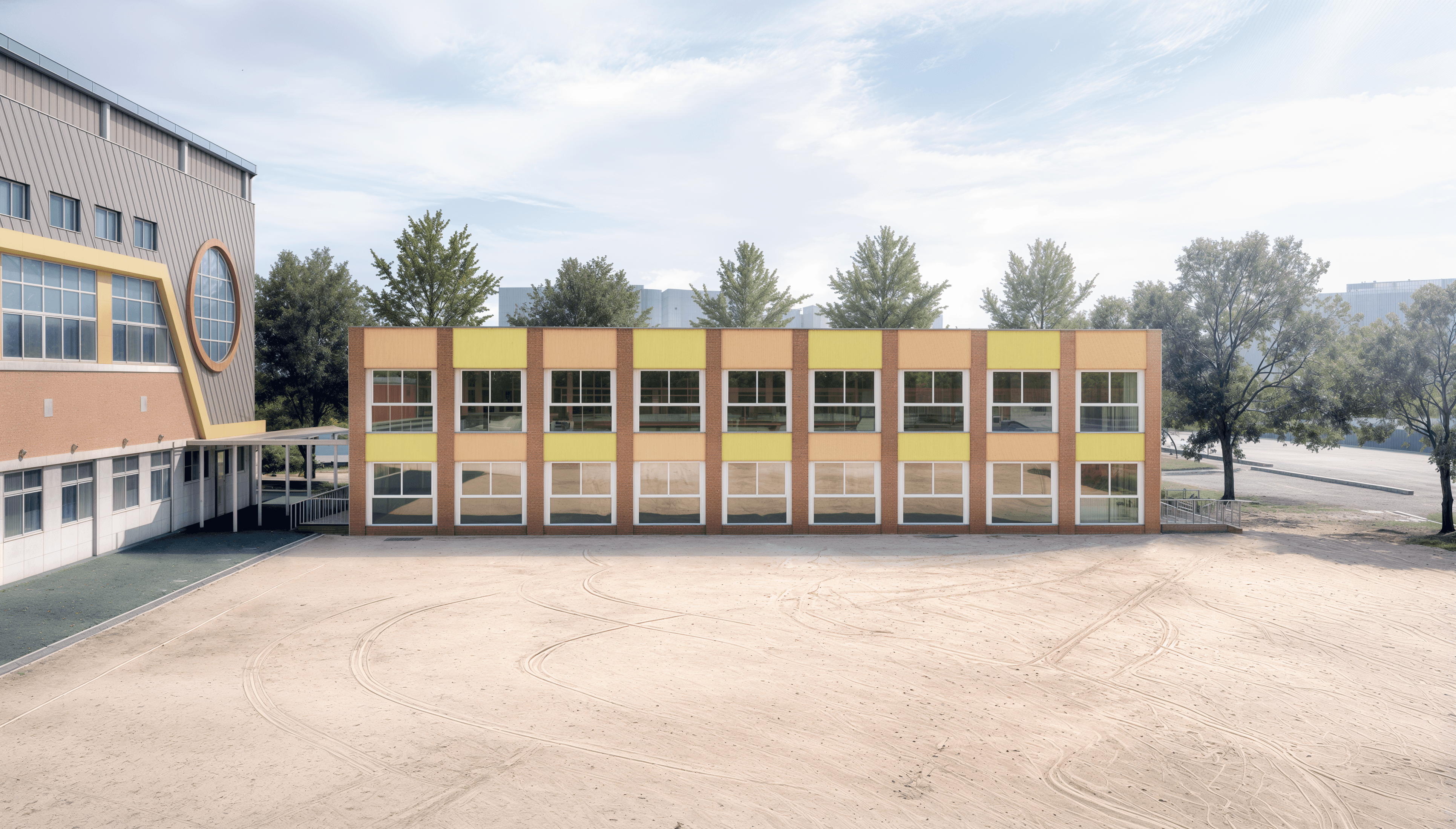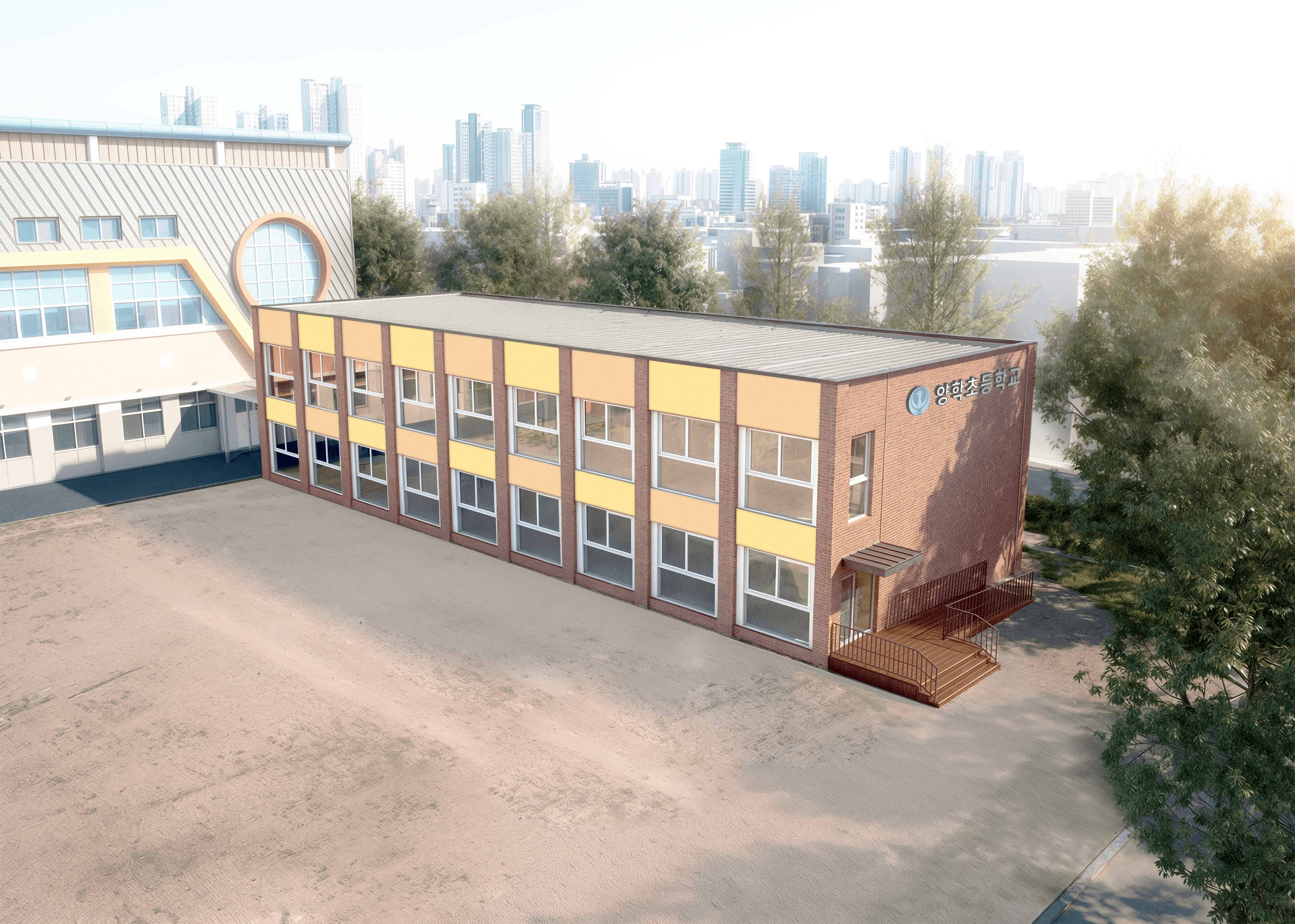 정돈된 입면의 리듬은 학교 공간의 안정감과 질서를 드러내며, 학생들의 성장과 배움의 흐름을 고스란히 담아냅니다. 포항의 밝은 빛과 해안의 개방적인 풍경을 절제된 색채와 단정한 구성으로 재해석하여, 건축물 속에 지역적 정서와 아이들의 꿈을 깊이 있게 투영했습니다.